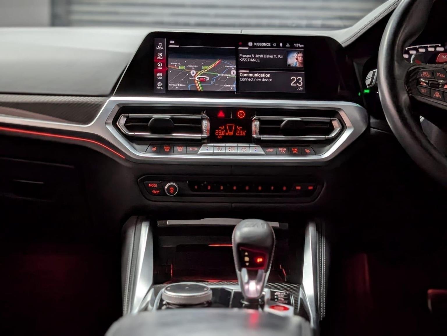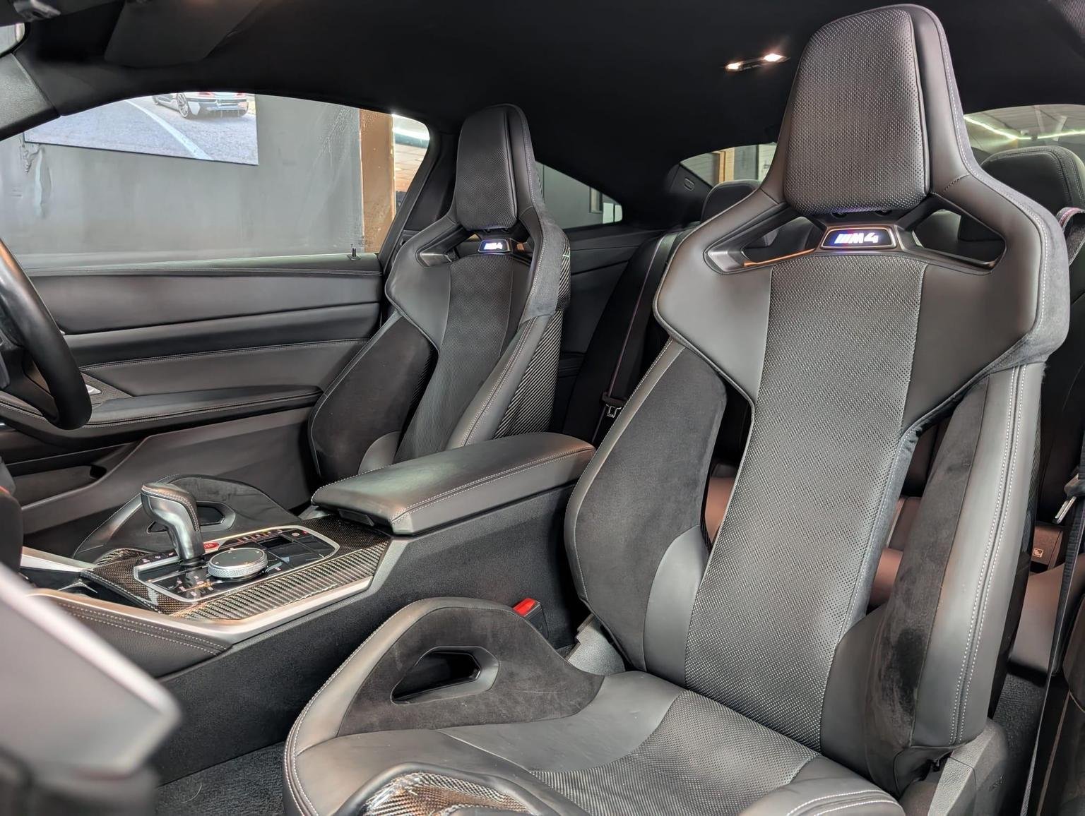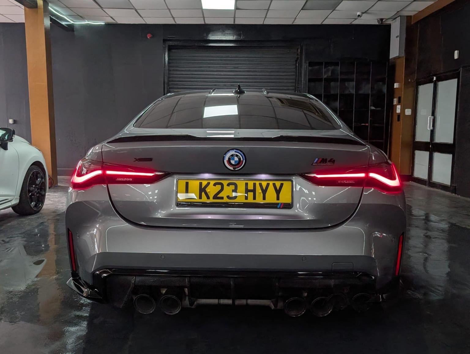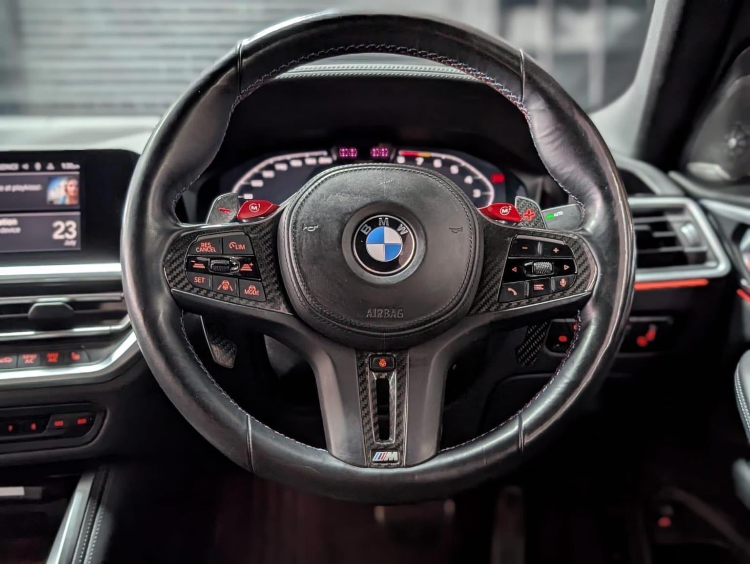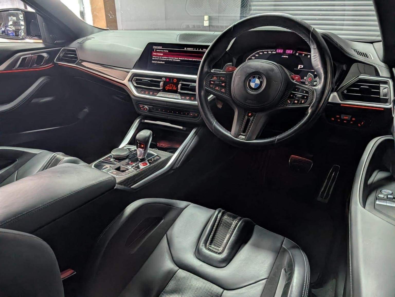 Double-Jointed Spring-Strut Front Axle, Driving Assistant, Driving Experience Switch, Electric Memory Seats, Electric Window, Electronic Differential Lock, Electronic Engine Immobiliser, Enhanced Bluetooth and Wireless Charging, Extended Storage, Exterior Mirror Caps and Rear Spoiler in High-Gloss Black, Exterior Trim - Extended High Gloss Shadowline, Exterior Trim - High-Gloss Shadowline, Floor Mats - Velour, Folding Wing Mirrors with Auto-Dimming, Follow-Me-Home Function, Front Heated Seats, Front Lumbar Support, Front and Rear Apron Plastic in Body Colour, Galvanic Controls, Glove Compartment - Illuminated, Harman Kardon Surround Audio Sound System, Head-Up Display, Headlight Beam-Throw Control, Headlining - Anthracite, Heat Protection - Sun Protection Glazing, High-Beam Assistant, Illuminated Bow-Type Door Handles - in Body Colour - Drivers Side with Door Lock, Interior Trim - Black High Gloss, Interior Trim - Carbon Fibre, LED Rear Lights, Language Version English Handbook, Lower Edges of Bumpers - Side Sills - Edge Binding of Diffuser and Diffuser in Black High-Gloss, Luggage Compartment Lights, M Compound Brakes with Red High Gloss, M Drive, M Drive Professional, M Seat Belts, M Sport Differential, M Sport Seats, M Steering Wheel, Model Badges in Black, Model Logo - Rear Right M4 Competition Inscription, Multifunction for Steering Wheel, Oil Sensor For Level and Grade, Parking Assistant, Parking Brake - Electromechanical, Power Socket 12v, Power Sockets, Rear Backrest - Foldable and Dividable by 40-20-40, Rear-View Mirror with Auto-Dimming, Reversing Light, Roof Aerial Bulge and Roof Mouldings in Black High-gloss, Runflat Indicator, Safety Battery Terminal Clamp, Shifting Point Display, Side Impact Protection, Smartphone Integration, Steering Column Adjustment, Strakes in Front Side Panel - Black Matt-Black High-Gloss with Model Badge, Sun Protection Glass, Sun Visors with Ticket Holder and Illuminated Vanity Mirror, Tailpipe Finishers in Black Chrome, Third Brake Light, Through-Loading System, Tool Kit Located in Luggage Compartment, Tyre Pressure Sensors, Tyre Repair Kit, Variable Sport Steering, Warning Triangle, Washer Jets - Heated, Welcome Light, WiFi Hotspot, 19in Front - 20in Rear Alloy Wheels - M Double Spoke - 826 - Forged - Jet Black with Mixed Tyres, Acoustic Glass, Active Guard Plus, Adaptive M Suspension, Air Conditioning - Automatic with Three-Zone, Airbags, Alarm System, Ambient Lighting, Armrests, Automatic Start-Stop Button, BMW ConnectedDrive Online Services, BMW Emblem on Engine Compartment Lid and Tailgate, BMW Emergency Call, BMW Individual Lights - Shadowline, BMW Kidney - Frameless with Horizontal Double Grille Slates - Black High-Gloss with Model Badge, BMW Live Cockpit Professional, BMW TeleServices, Battery in Luggage Compartment, Bumper System - Front and Rear, Centre Armrest in Rear - Folding with 2 Cup Holders, Centre Lock Switch, Closing System with Central Locking, Condition Based Service, Connected Package Professional, Crash Sensor, Cruise Control including Speed Limiting Function - LIM Button, Cupholder, DAB Radio, DSC - Dynamic Stability Control Plus, Door Sill Finishers with Aluminium Inserts and Model Inscriptions, Door Sill Strips